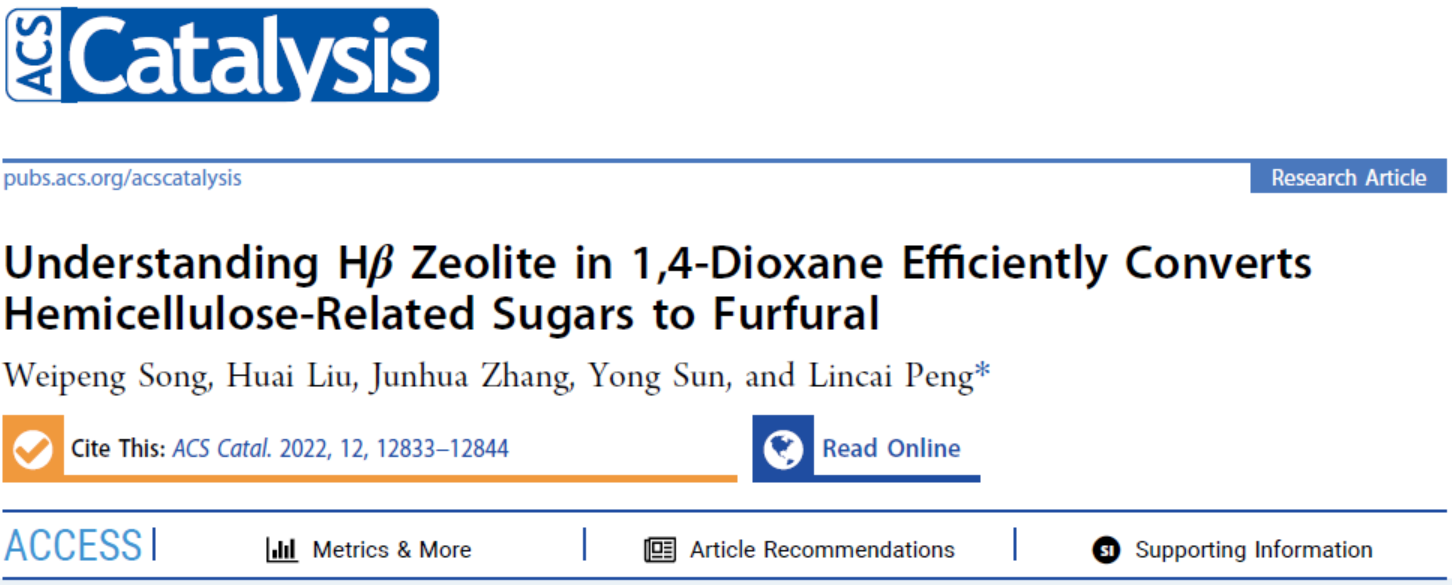 生物质化工团队关于半纤维素高效催化转化选择性制备平台化学品糠醛的最新研究成果“Understanding Hβ zeolite in 1,4-dioxane efficiently converts hemicellulose-related sugars to furfural”在美国化学会催化领域旗舰期刊《ACS Catalysis》发表(中科院双一区TOP期刊,影响因子13.7)。论文的第一作者为色色视频