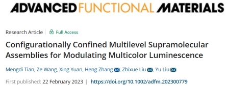 生物质化工团队与南开大学化学学院刘育教授团队合作,在用于多色发光调制多级超分子组装体的研究方面取得重要进展,相关成果“Configurationally Confined Multilevel Supramolecular Assemblies for Modulating Multicolor Luminescence”在材料科学领域权威学术期刊《Advanced Functional Materials》发表(中科院双一区TOP期刊,IF=19.924,论文链接DOI:10.1002/adfm.202300779)。论文的第一作者为色色视频