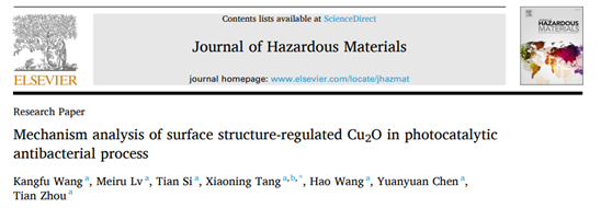 先进功能材料研发与应用团队在无机光催化功能材料的可见光响应抗菌机制研究方面取得系列重要进展,相关研究成果以“Mechanism analysis of surface structure-regulated Cu2O in photocatalytic antibacterial process”和“Principle of CoS2/ZnIn2S4 heterostructure effect and its mechanism of action in a visible light-catalyzed antibacterial process”为题,分别发表在SCI一区TOP期刊《Journal of Hazardous Materials》和《Journal of Colloid and Interface Science》上。论文的第一作者分别为色色视频