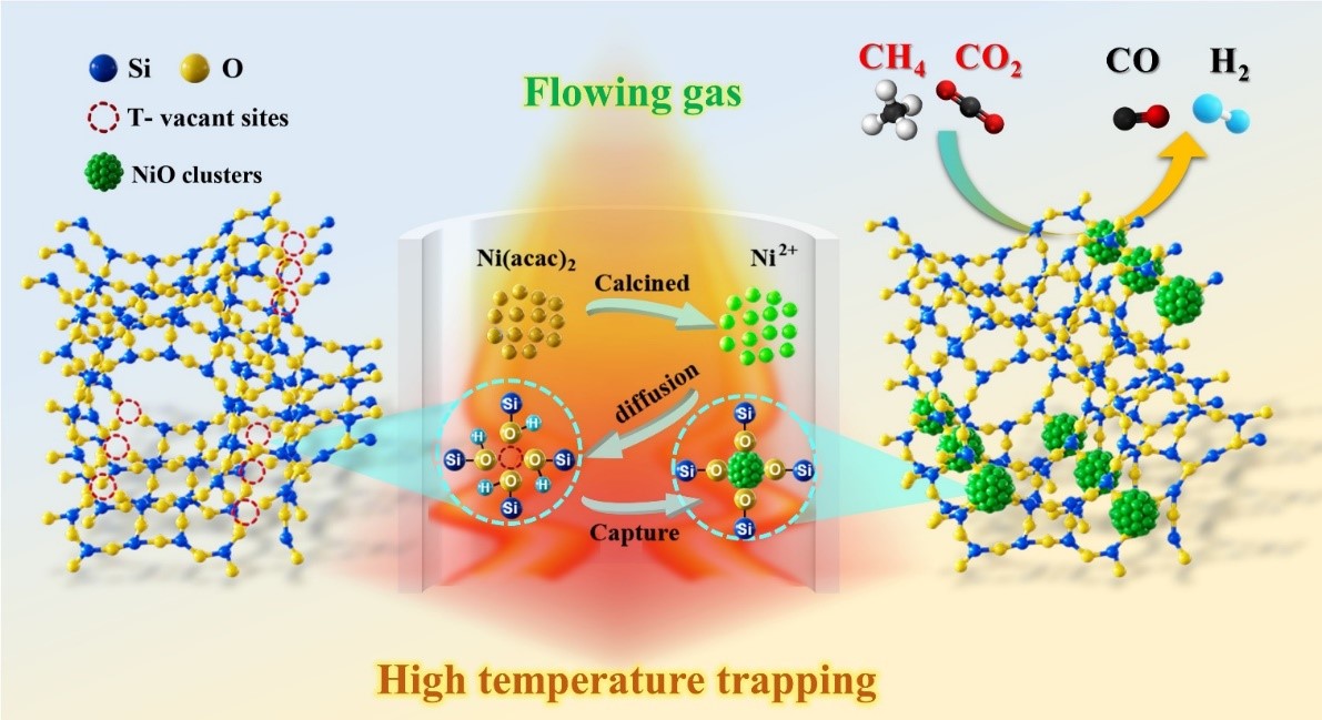 CO2和CH4是造成温室效应的主要贡献者,CH4催化重整反应不仅解决CO2过度排放问题,还为高附加值化学品合成气的制备提供来源,具有重要研究意义与应用前景。目前围绕高温多相催化反应过程研究,调控催化剂活性中心的高分散度与高温抗烧结能力是该领域亟待突破的技术瓶颈。