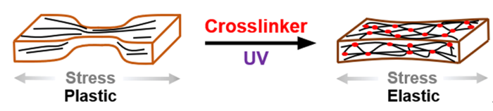 电子材料的弹性化为可穿戴设备领域带来了新的机遇。铁电体类似于半导体和电极,是可穿戴电子产品中的关键材料。但可穿戴设备的发展需要铁电体在内的这些电子材料能够承受大幅(达到50~80%)且频繁的应变,同时要求其保持良好的电学性能。因此,铁电材料的弹性化成为一个极具前景的方向。与经典铁电体类似,弛豫铁电体表现出多功能性,包括热释电性、压电性和介电性等,为开发和应用为高性能驱动器和传感器提供了广阔的前景。然而,无机弛豫铁电体表现出脆性,而有机弛豫铁电性表现出塑性,均无弹性。弛豫铁电体作为现代电子设备中的关键材料,这一问题将限制了它们在柔弹性电子产品中的应用。中国科学院宁波材料技术与工程研究所李润伟研究员和胡本林研究员首次提出了“弹性铁电体”的概念(Science, 2023, 381: 540–544),通过精准微交联实现了铁电体结晶度和回弹性之间的微妙平衡。然而,该本征弹性铁电体的实现条件需要高温热交联,在一定程度上限制了弹性铁电材料的应用前景。