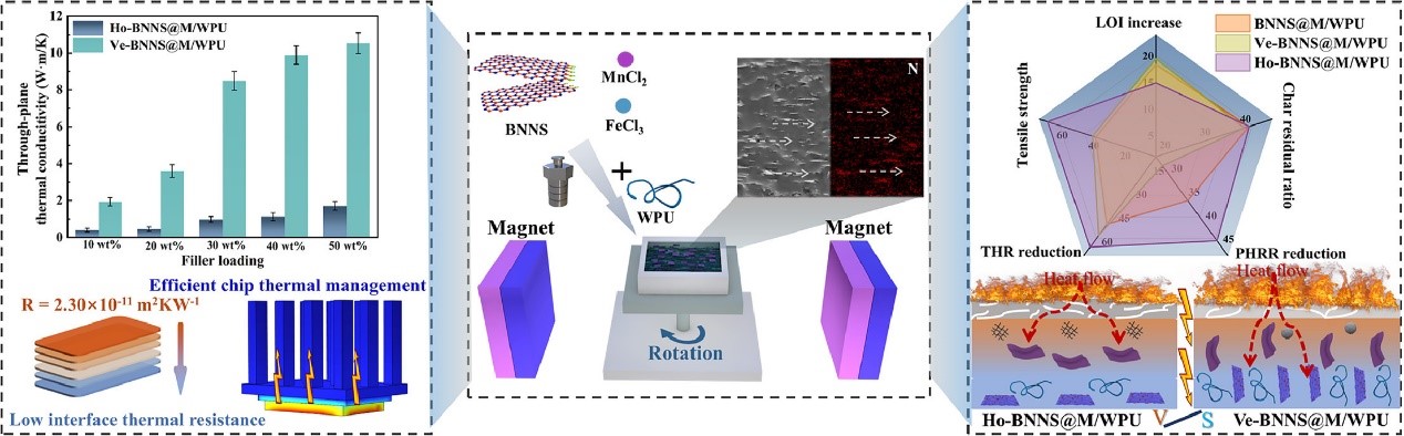 现代精密电子元器件的快速发展对电子封装材料的热管理性能提出了新的挑战。氮化硼纳米片(BNNS)具有优异的绝缘性能和面内导热性能,已经被广泛应用于热管理材料的增强填料。然而,BNNS的横向热导率较低,开发精确控制其在基材中排布微结构的方法,充分发挥BNNS导热增强能力,备受科研工作者的关注。