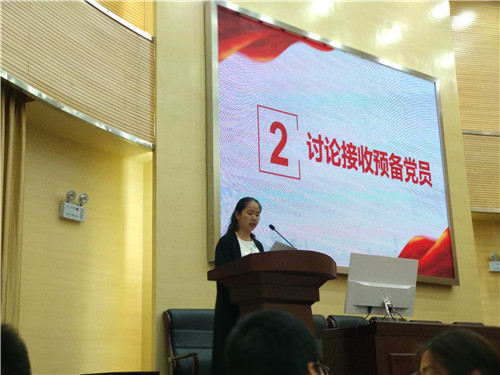 5月23日20点整,党支部召开支部大会讨论接收预备党员,4名发展对象分别汇报了对党的认识、入党动机、本人履历、家庭和主要社会关系情况,以及需要对党组织说明的问题;其入党介绍人介绍发展对象有关情况,并对其能否入党表明意见;随后,支部委员会报告了对发展对象的审查情况及对申请人是否具备入党条件的意见;与会党员对发展对象能否入党进行充分讨论,均无异议;最后,通过有表决权的正式党员投票表决,4名发展对象均以12票全票通过成为预备党员。