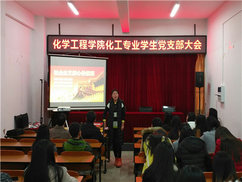 化工专业学生党支部支部大会在化工楼报告厅召开“诚实做人 诚信考试”专题学习会,旨在将“诚实做人诚信考试”落实到支部内部,深化党内教育,真正发挥学生党员先锋模范作用,发挥基层党支部的战斗堡垒作用。