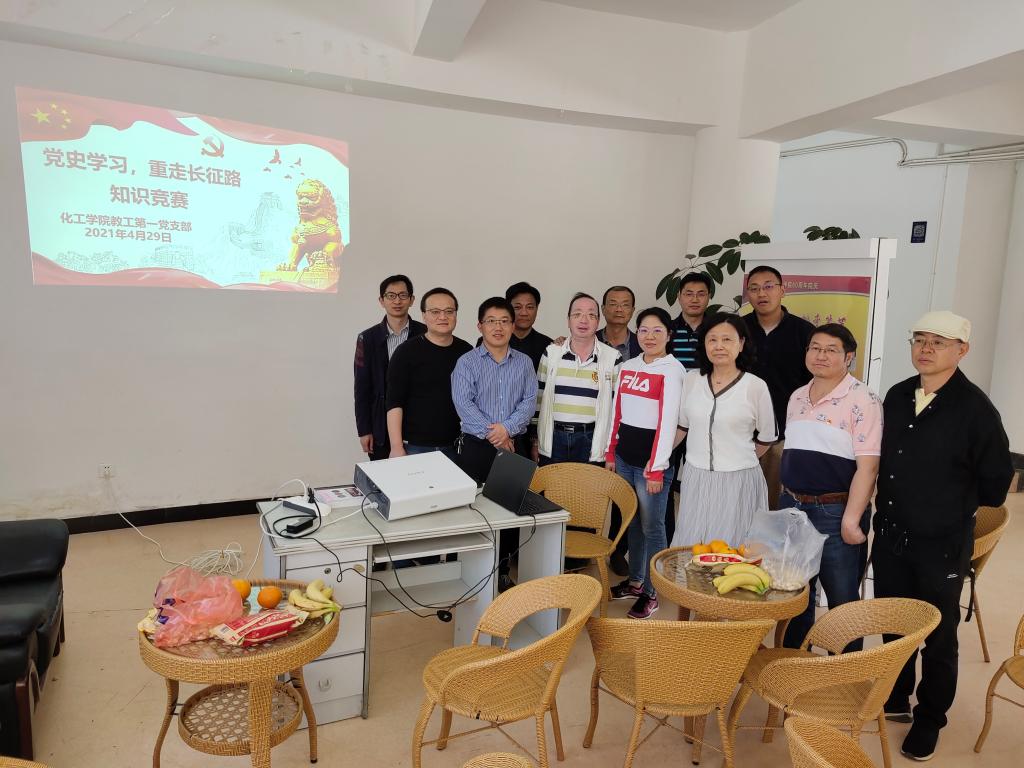 色色视频 教工第一党支部于2021年4月29日在化工学院党员活动室举行了“党史学习、重走长征路知识竞赛”,由院机关党员、生物质工程系党员以及实验中心党员组成的三个小组围绕党史知识问答展开了激烈对抗,充分展示了教职工党员丰富的党史知识和积极进取、团结协作的精神。