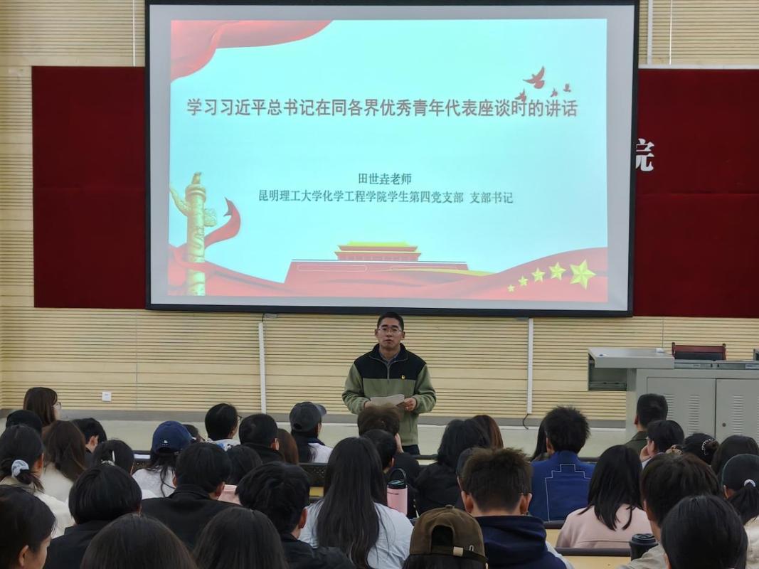 田世垚老师首先带领全体与会党员学习了习近平总书记同各界优秀青年代表座谈时的重要讲话,引导党员深刻领会核心要义,筑牢信仰之基,把稳思想之舵。