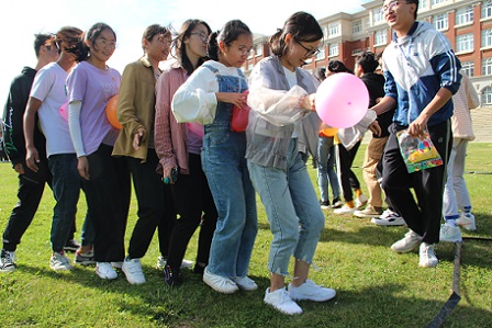呈贡校区公教楼前举行,团委谢丽芬老师及团委、学生会全体成员参加。本次团建由团委、学生会办公室负责人张云波主持。