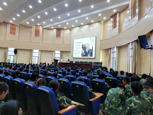 2019级军训开训动员大会在化工楼100报告厅举行。本次大会有2019级辅导员谢丽芬老师、学院学工办主任袁敬老师出席,2019级助班以及2019级全体新生参加。
