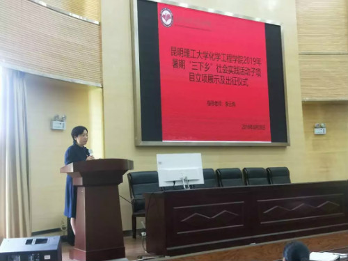 2019年暑期“三下乡”社会实践活动子项目立项展示及出征仪式于化工楼100报告厅顺利举行。学院党委书记齐毅老师、党委副书记李云燕老师出席,社会实践子项目指导老师谢丽芬、杨欢、罗晓菲老师及项目成员全体参加。