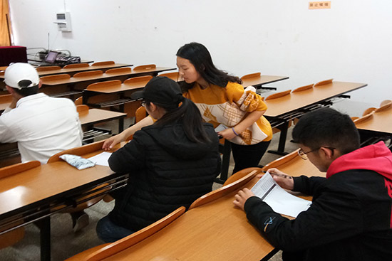 下午13:00,参与活动的同学有序进场,工作人员宣读注意事项后,同学们自觉把手机关机放到了桌上,然后分发试卷,之后播放听力,接着进行笔试。一切都按照四级考试的流程有条不紊的进行着,15:30,考试结束同学们有序离场,活动圆满成功。