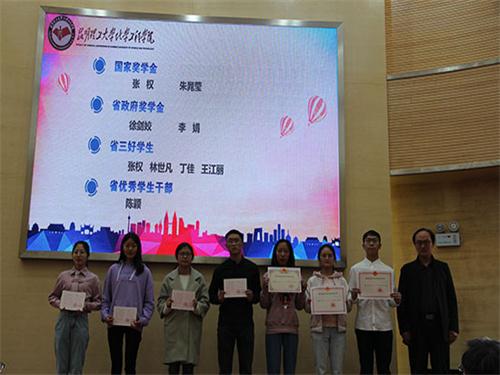 2018年度学生获奖情况,在对获奖同学表示祝贺的同时也对同学们提出了要求,希望同学们掌握扎实的专业知识积极参与科研活动。