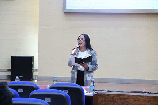 活动伊始,主持人为大家介绍出席本次活动的各位评委、比赛的规则以及评分标准,接着宣布本次朗诵比赛正式开始。