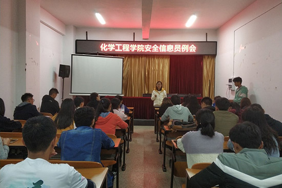 勤助会在化工楼负一楼报告厅召开了安全信息员例会。勤助会指导老师杨欢老师、18级辅导员罗晓菲老师出席本次例会;各班安全信息员及勤助会工作人员共同参与例会。本次例会由勤助会王康富主持。