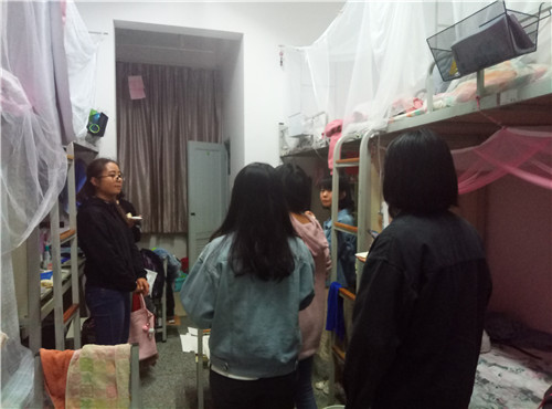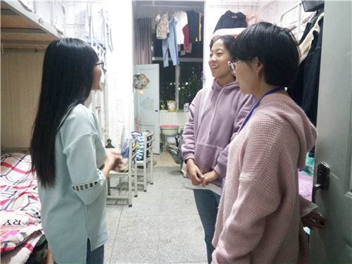 本次宿舍走访活动分别对2018级男女生宿舍进行了走访。走访过程中,党员服务队队员向2018级新生们详细介绍了交通安全法规法律知识,并从步行安全、骑车安全、乘车安全三个方面向新生们强调了外出交通安全问题,提醒同学们时刻遵守交通规则 ,路途中不低头玩手机、不与同学嬉戏打闹等。同时,对宿舍环境卫生问题向新生提出要求,希望同学们做到干净、整洁、卫生。