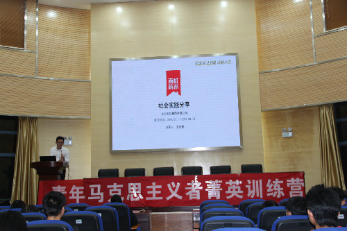 随后,王绍银同学分享了他在校园之外的社会实践活动,结合自身的情况告诉了大家,社会实践对于日后的求职的帮助。