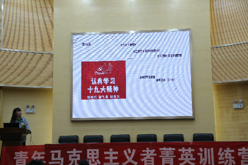 青年马克思主义者菁英训练营第二期“榜样的力量”在化工楼100报告厅顺利举行。本次培训有化工院团委李凯宇老师出席,化工院团委副书记彭芳主持,青马训练营全体营员参加。
