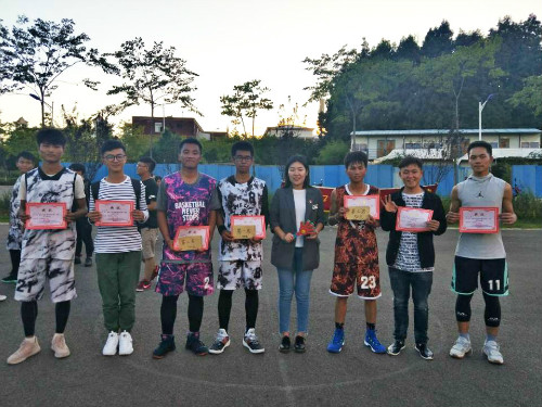比赛结束后学院团委李凯宇老师为获奖队伍颁奖并拍照留恋,祝贺篮球赛顺利完成,并对体育部全体成员的付出表示肯定和感谢。