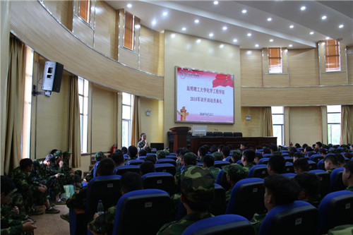 2018级新生军训开训动员大会在化工楼100报告厅举行。大会由2018级辅导员罗晓菲老师主持,学院党委副书记李云燕老师出席了本次大会。