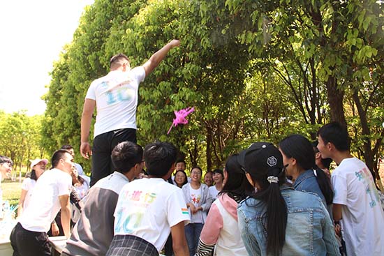在伴随着惩罚的游戏中,活动氛围进入高潮,大家都玩得非常开心。所有游戏过后,进行的是团队大总结。采取总分总的方式,首先由指挥员引导所有成员围绕“没有完美的个人,只有完美的团队”以小组为单位总结经验、感想、收获以及付出。