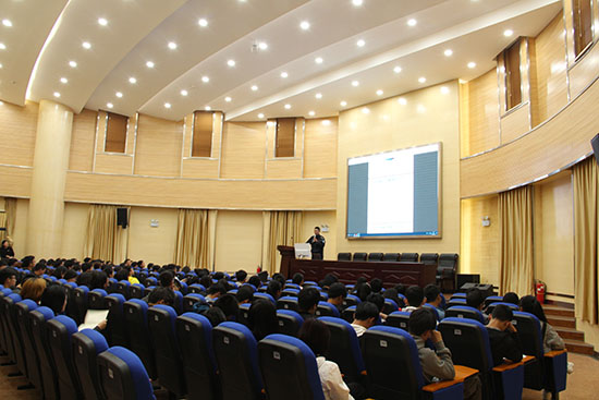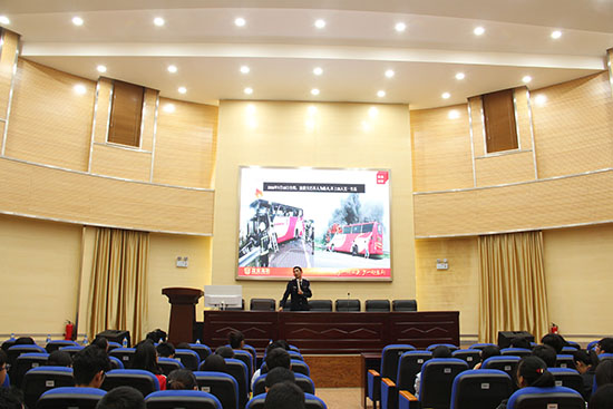 接下来是第二主讲嘉宾民警颜贞楷的讲座时间,他主要向大家讲述平时生活中应该如何保护自己以及生命受到威胁时该如何自救。在讲座中,他提到生命对于任何一个人都只有一次,并殷切的希望大家珍爱生命,保护好自己,保护好自己所爱的人。他通过对典型案件“重庆邮电大学女大学生案”、 “云南昭通小学踩踏案”等案例进行深入解读,告诉大家如何避免成为受害对象,从而更好的保护自己。此外,他也通过一些因为救助他人而失去自己生命的案例告诉大家要懂得保护自己,遇到问题量力而行,不要盲目进行救助,以免造成更大的损失。接下来,他又讲解有关消防安全的知识。他分析了造成火灾的种种因素,结合播放的一些相关视频,用血淋淋的现实对火灾进行解读,从而增强大家对火灾的重视。同时,他还跟现场的同学进行了互动,并且在现场示范发生踩踏时正确的自我保护方式以及灭火器的正确使用方法。他鼓励大家多学习一些基本的自救常识,并把自己所学分享给自己的家人,以便在遇到突发状况的时候,大家都能够很好的保护自己。