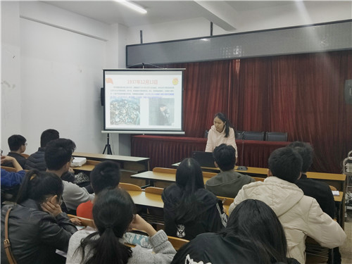 团课第一项内容:不忘历史,缅怀先烈。金老师带着团学干部们一起回顾历史,从1931年“918事变”到1937年南京大屠杀,再到1944年松山战役。抗日过程中烈士们不怕牺牲,血拼战场,在为期96天的战争中取得了最终胜利,但却伤亡惨重。老师说:“忘记等于背叛,我们没有权利替先辈们原谅侵略者。”那是一段艰苦的日子,先烈们用生命换来了今天安定祥和的日子,我们不能忘记。团课第二项内容:学习“善洲精神”,做合格共青团干部。保山施甸有一位扎根大亮山,义务植树造林的原保山地委书记—杨善洲同志。带领十几位群众深入大山,植树造林建成面积5.6万亩,并无偿捐给国家。作为新时代的大学生应学习“善洲精神”,成为下一个百年的建设者。