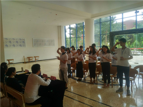 紧接着,学生代表罗晓菲发言,我们要珍惜机会迎接挑战,去丰富自己、锻炼自己、提高自己,多思多看多行。随后,张英同学带领大家宣誓。最后,李副书记为我们授旗。