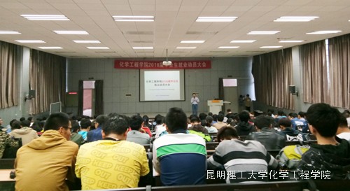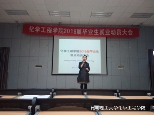 2018届毕业生就业动员大会在呈贡校区建工200报告厅举行。出席此次大会的有化工学院党委副书记李云燕老师、学工办主任袁敬老师、团委书记张祎颖老师、2016级辅导员金雯老师。参与大会的还有2014级全体同学。此次动员会由学院就业指导老师袁敬老师主持。