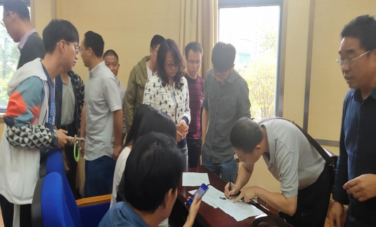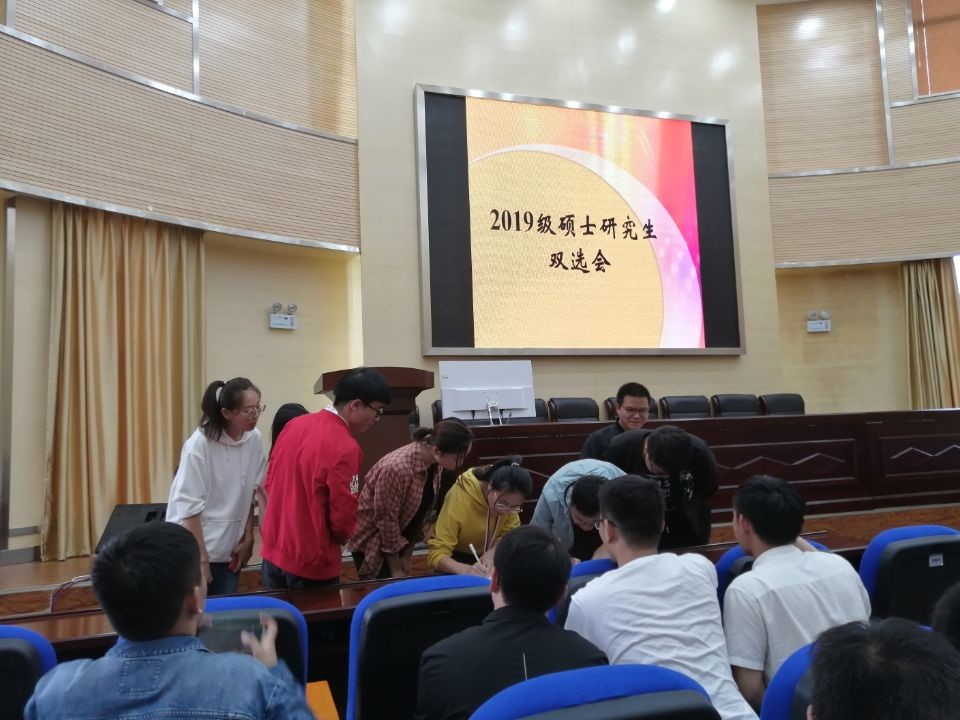 而后,2019级硕士研究生双选会正式开始。首先由全体研究生选择指导教师并依次签字,然后再由各位指导教师依次选择自己的学生并确定名额。