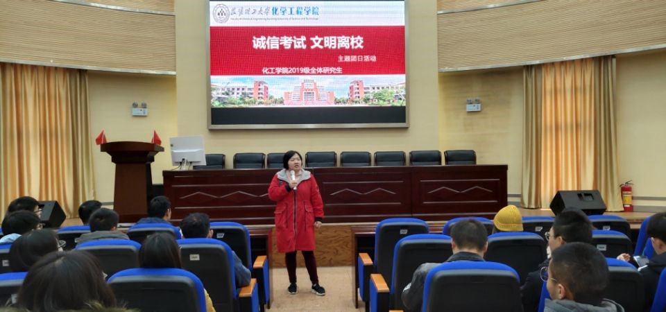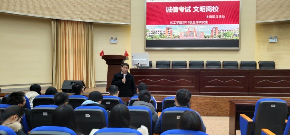 2019年12月27日上午10:00,色色视频 于化工楼100报告厅举办了2019级研究生“诚信考试,文明离校”的主题团日活动。本次主题团日活动邀请了何洁老师、钱伟民老师为同学们作报告,2019级全体研究生参加。