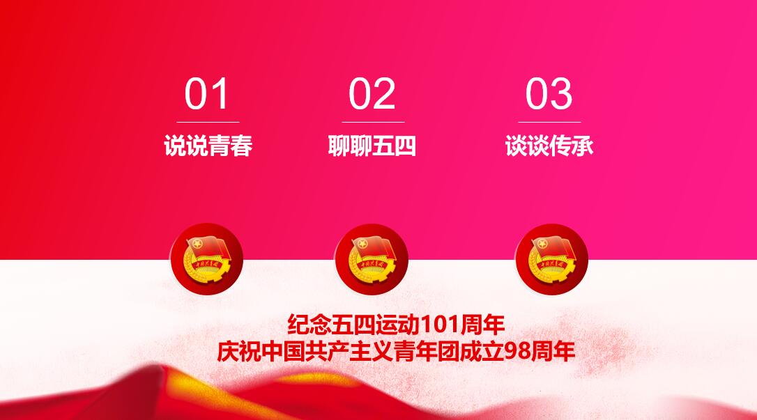 首先,说说青春。“我们是五月的花海,用青春拥抱时代。我们是初升的太阳,用生命点燃未来……”李凯宇老师讲到青春的含义,可以是责任,是担当,是慷慨激昂,还可以是勤于思,是精于业,是一代又一代薪火相传。青春蕴含着蓬勃力量,这股力量来自对红色基因的传承,来自对理想信念的坚守,来自对人民立场的秉持,来自对奋斗精神的诠释,来自对实践品格的磨砺,来自共青团对优良传统的继承与创新。何为五四,百年前,青年力量星星之火,燎原民主。当今时代青年力量,通力建设,共克时艰。中国青年,青年中国,前途似海,来日方长。