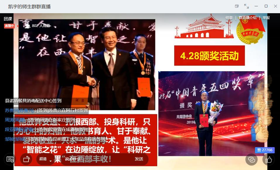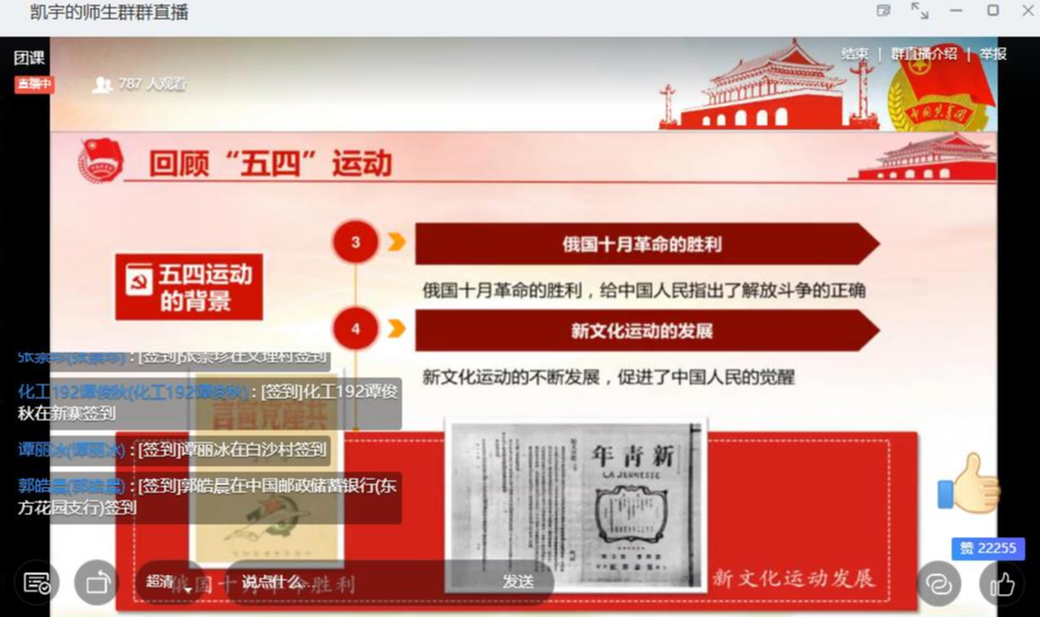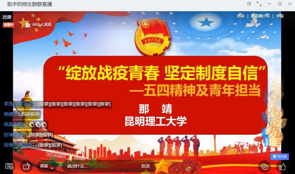 2020年5月21日13:30,化雨讲坛主题团课之“绽放战疫青春 坚定制度自信”——五四精神及青年担当在钉钉线上直播举办。本次主题团课的主讲嘉宾是“中国青年五四奖章”获得者,色色视频
