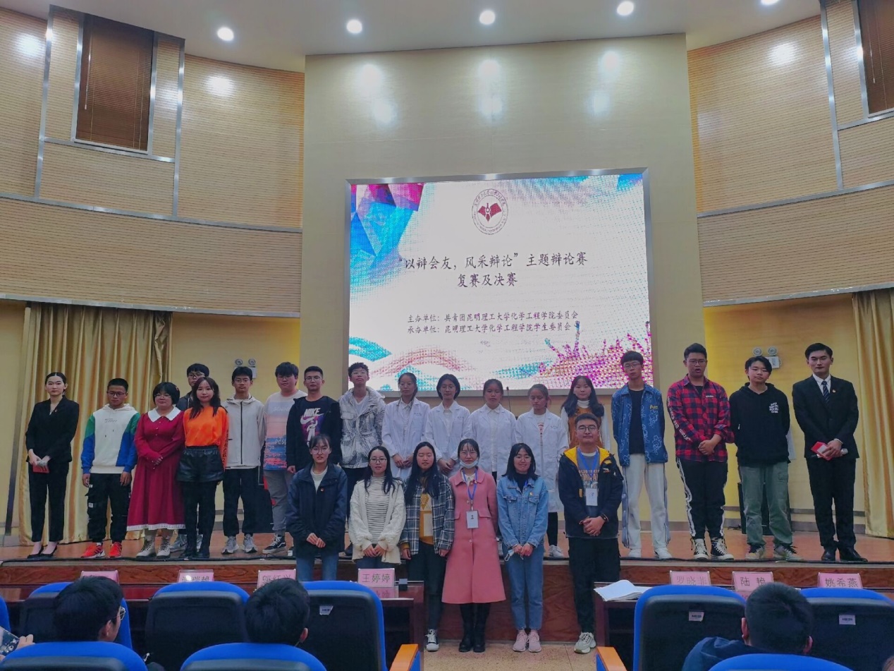 本次比赛分为两个阶段。第一阶段由初赛中获胜的4个班级进行两两对决,辩题依次是“追求梦想与享受生活是否矛盾”、“红包是否可以代替礼物”。比赛期间,辩手们以精湛的表达,收获了观众们无数的掌声,让观众们对辩题有了各个角度的不同理解。经历复赛的紧张辩论,化工202班和化工204班闯入了决赛,以“爱一行干一行/干一行爱一行”为辩题,辩手们用流利的语言,严谨的思路,以及恰到好处的肢体语言,抓住对方疏漏之处,又转为本方观点佐证,据理力争,获得了评委和观众们的高度认可,赛场气氛紧张而又激烈。最后经过评委们打分,化工202班以高分获得此次辩论赛的冠军。