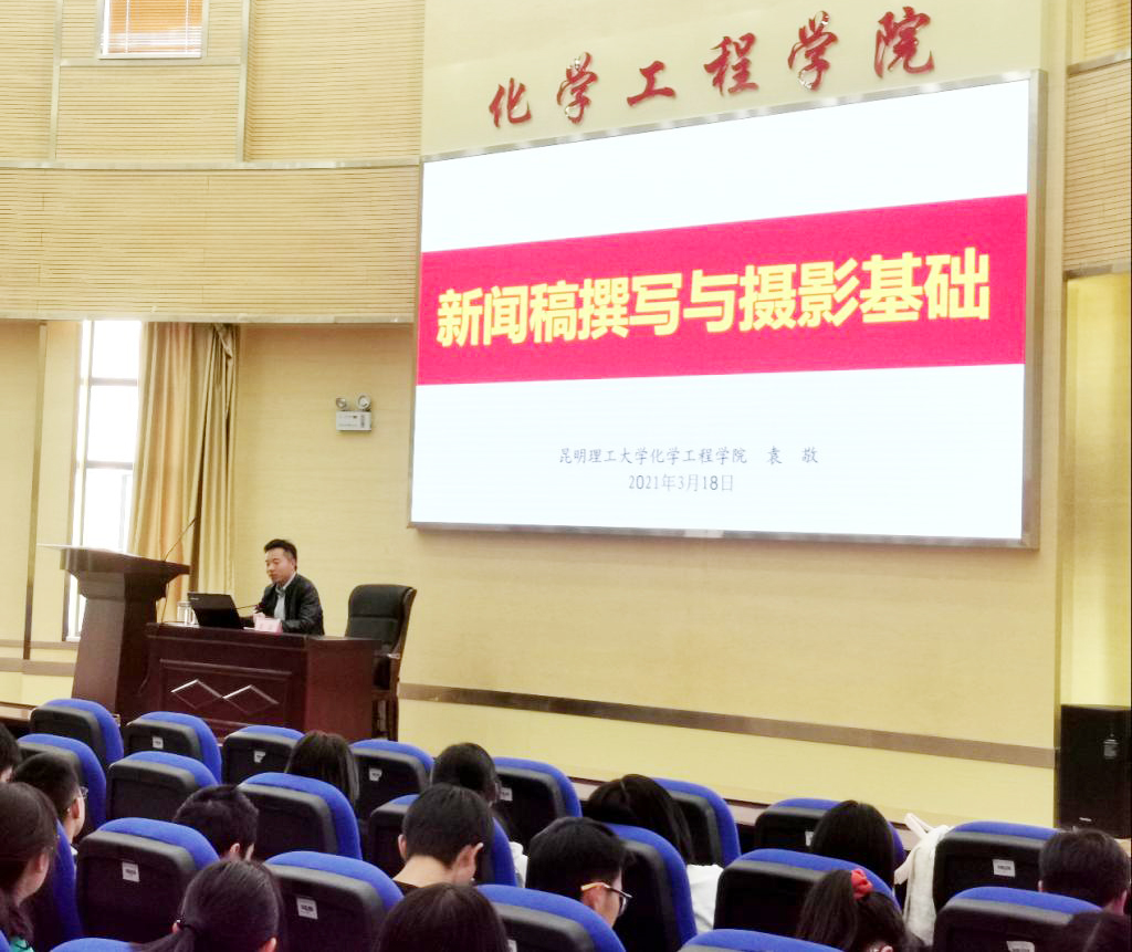 在化工楼100报告厅举办了第六期青年马克思主义者菁英训练营。本次活动主题为新闻稿撰写与摄影基础,由院党委委员袁敬主讲。院党委齐毅书记、院党委李云燕副书记、团委书记李凯宇、2019级辅导员谢丽芬、辅导员田世垚出席,100余名青马训练营营员及各班级组宣委员积极参加,朱芝同学主持。