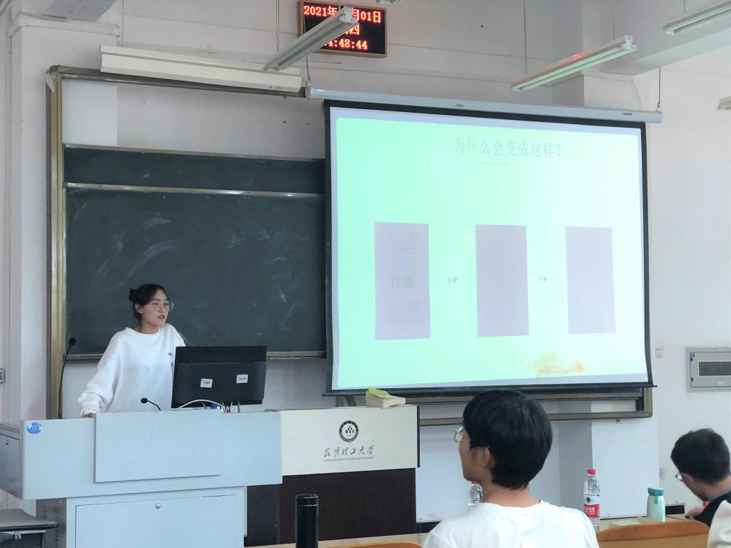 其次,封丽同学以“这样的我”为题,与同学们分享交流了自己大学三年的心得体会,通过自己大学期间的经历激励同学们寻找自己的读大学的意义和价值所在,让同学们明白,坚持不是挂在嘴边,而是马拉松的最后一公里,是困难时刻的永不气馁,是向目标前行的争分夺秒。