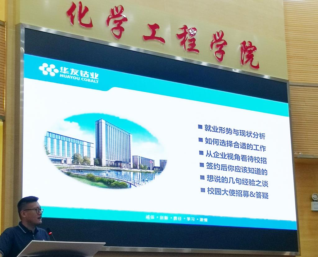 举办了“企业HR进校园”就业指导讲座,学院2018级(2022届)本科生参加了讲座,主讲嘉宾为浙江华友钴业股份有限公司招聘经理张振宇。