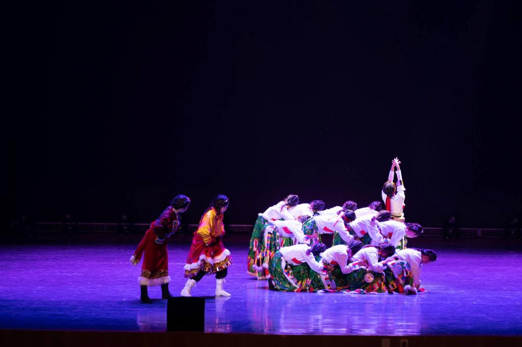 15名舞蹈队员在经过90余天的刻苦排练后携《系起希望的哈达》参赛,为伟大光荣正确的党敬献感恩的哈达。