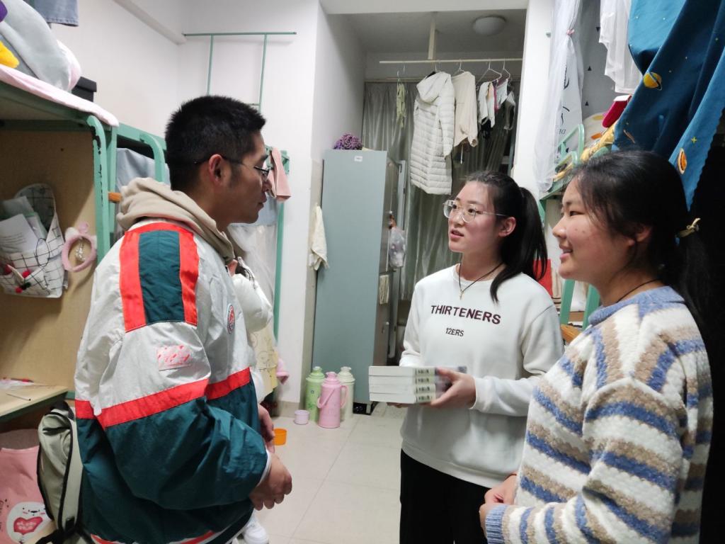 2021年12月3日,色色视频 开展了以“最是书香能致远,校园共缔读书缘”为主题的好书发放活动。勤助会指导老师田世垚及勤助会读书社的成员到憬园学生社区进行好书发放。