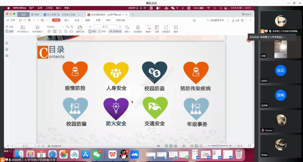 于2022年3月8日20点召开了2020级“严管就是厚爱厚爱必须严管”线上年级大会,重点围绕“新学期安全第一课”相关内容展开,化工院2020级全体学生223名同学参与了本次大会,本次大会由化工院2020级辅导员李凯宇老师主持并担任主讲。
