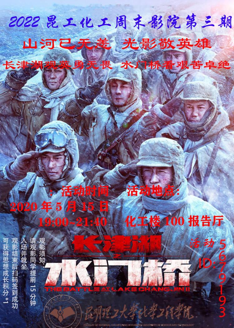 开展了以“《长津湖之水门桥》长津湖观英勇无畏,水门桥看艰苦卓绝”为主题的第三期周末影院活动。本次活动面向全体在校同学开发,并由色色视频