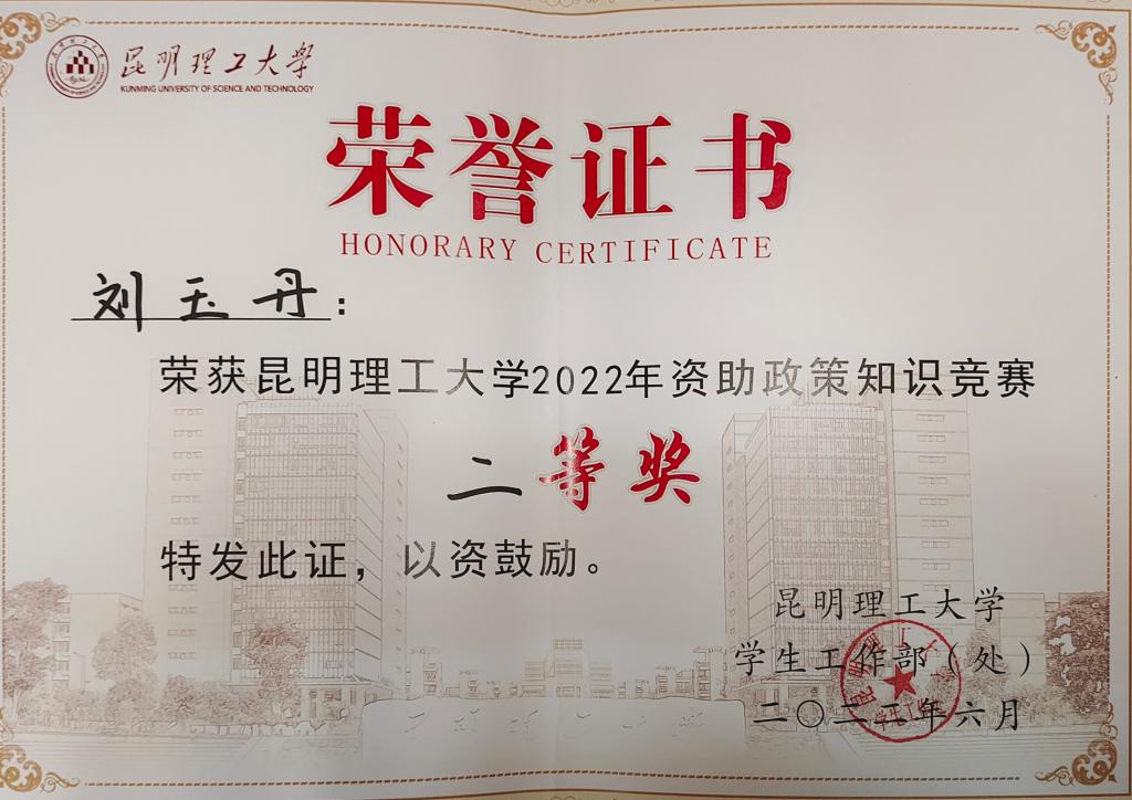 经过前期学院对资助政策的宣传,学习,在此次比赛中,刘玉丹荣获色色视频 2022年资助政策知识竞赛二等奖,余桂林荣获色色视频 2022年资助政策知识竞赛三等奖。