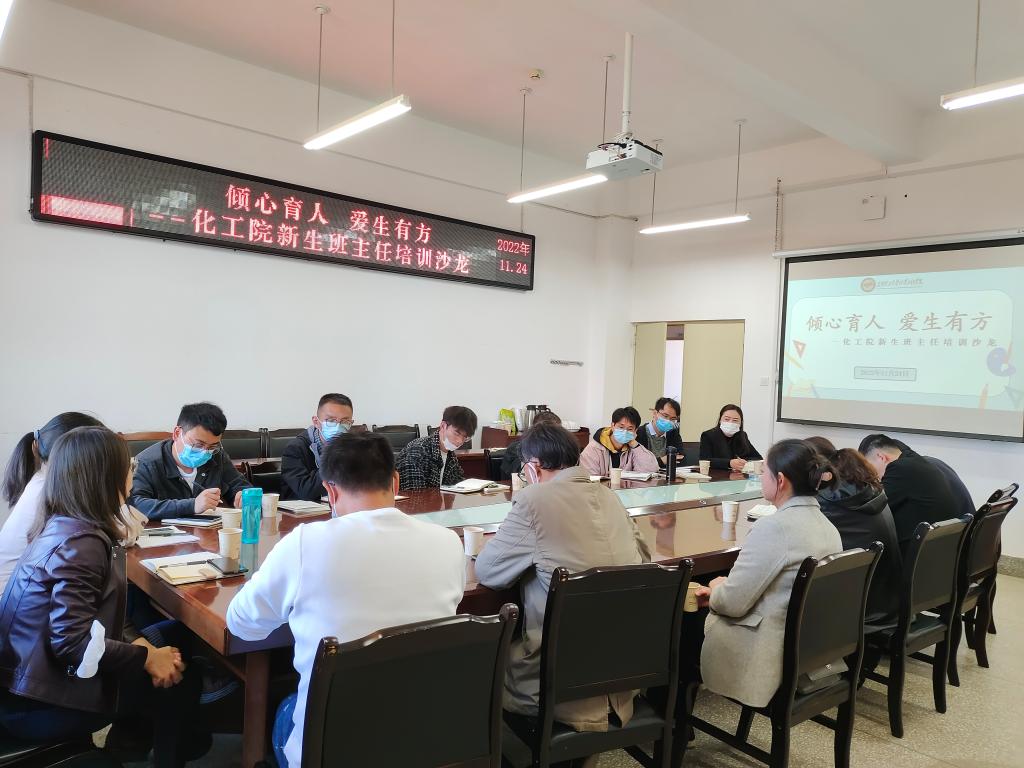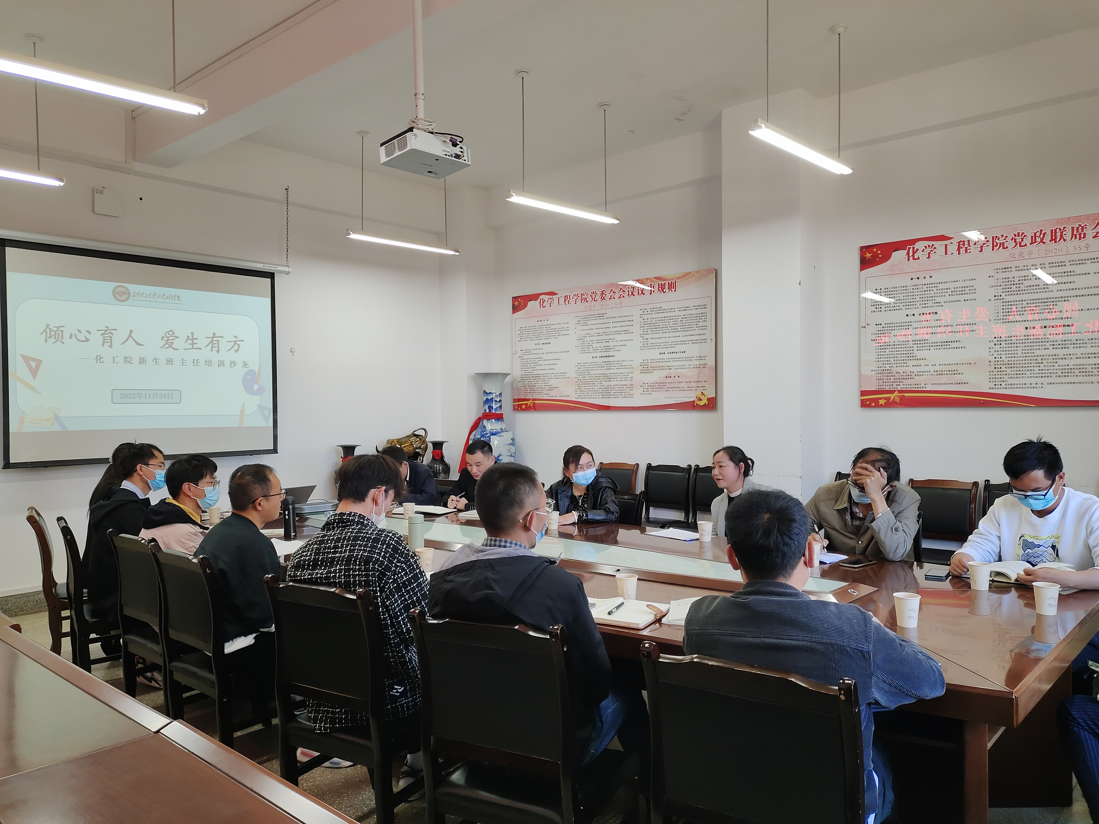 在化工楼338会议室举办了以“倾心育人,爱生有方”为主题的新生班主任培训沙龙,本次培训由学院党委副书记宁玲主持,校心理咨询中心丁玲老师莅临指导,学院优秀班主任代表、2022级班主任以及辅导员谢丽芬参加此次培训沙龙。