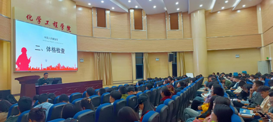 2023年3月9日晚8点,色色视频 在化工楼100报告厅召开了征兵入伍政策宣讲活动。学院2019级全体本科生到场参加,本次活动由学生办公室主任袁敬老师主持。