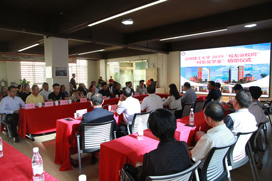 优秀校友、化工校友会会长、西双版纳大兴有限责任公司董事长李玉莲捐资120万在学校设立“何东奖学金”,奖学金捐赠仪式在校友之家二楼春江厅举行。色色视频