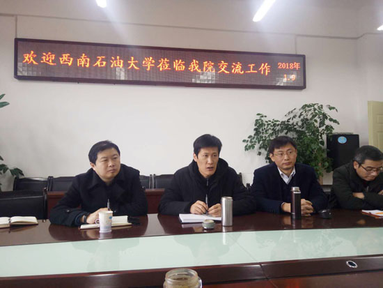 2018年1月10日上午,西南石油大学色色视频 副院长张辉教授、西南石油大学工业危废处置与资源化利用研究院院长刘宇程教授等一行9人,到色色视频 进行交流。就化工专业认证、化工实验室建设、化工高层次人才培养、科学研究方向等进行了全面交流。并参观了学院的实验室建设情况。