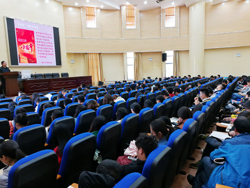 邀请云南工业干部学院执行院长刘智国做“贯彻学习党的‘十九大’精神,积极推进学校‘双一流’建设”讲座。学院正式党员、预备党员、积极分子参加了此次讲座。