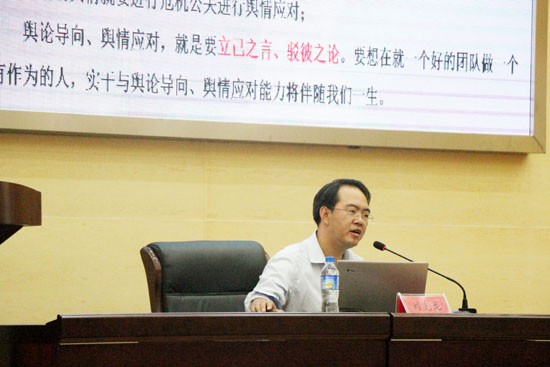 刘先龙律师从国内外网络舆情对比出发,结合生动的案例,为我校师生剖析了舆情的重要地位、舆情工作面对的现实困难,讲授了强化舆情监督和舆论引导工作的方式方法,引导我校师生知法守法、明辨是非,积极传播正能量,为国家的发展,社会的进步做出贡献。