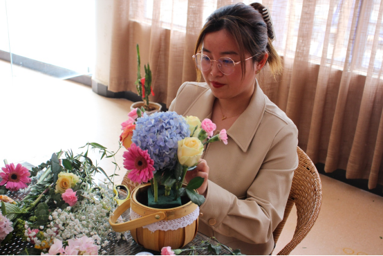 接下来,开展以“巾帼之花 美丽绽放”为主题的插花活动,学院邀请了拥有多年插花经验的花艺老师何昌荣老师,给大家讲授选花、裁剪、颜色搭配、造型等方面的插花技巧。