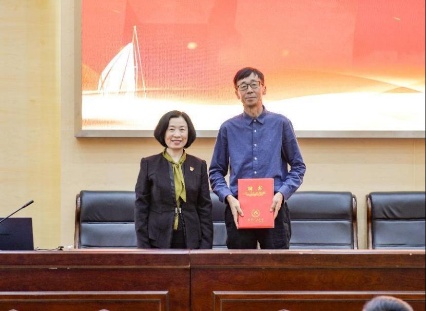 李云燕书记为客座教授邢爱民颁发聘书。