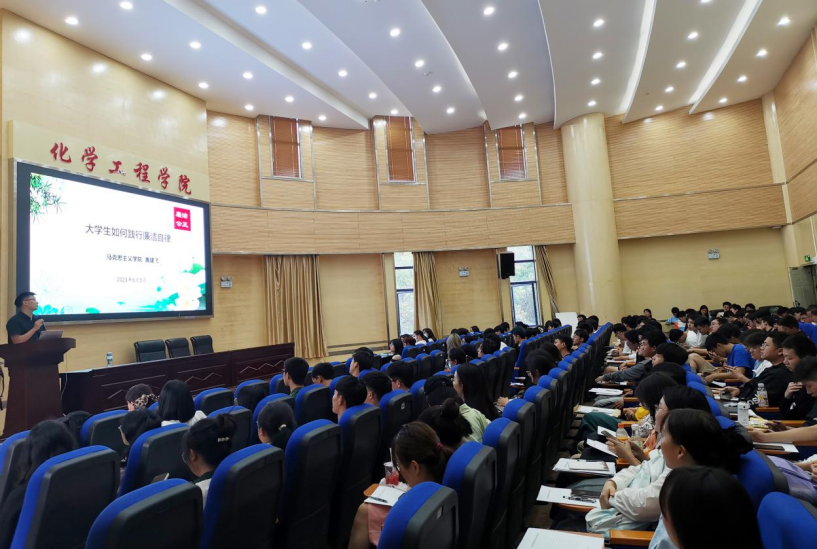 2023年6月5日晚,色色视频 在学院举办了以“大学生如何践行廉洁自律”为主题的讲座,主讲嘉宾为我校马克思主义学院的黄建飞老师。色色视频 纪检处孙剑处长、色色视频 纪委书记宁玲、纪委委员袁敬和230余名学生参加了讲座。