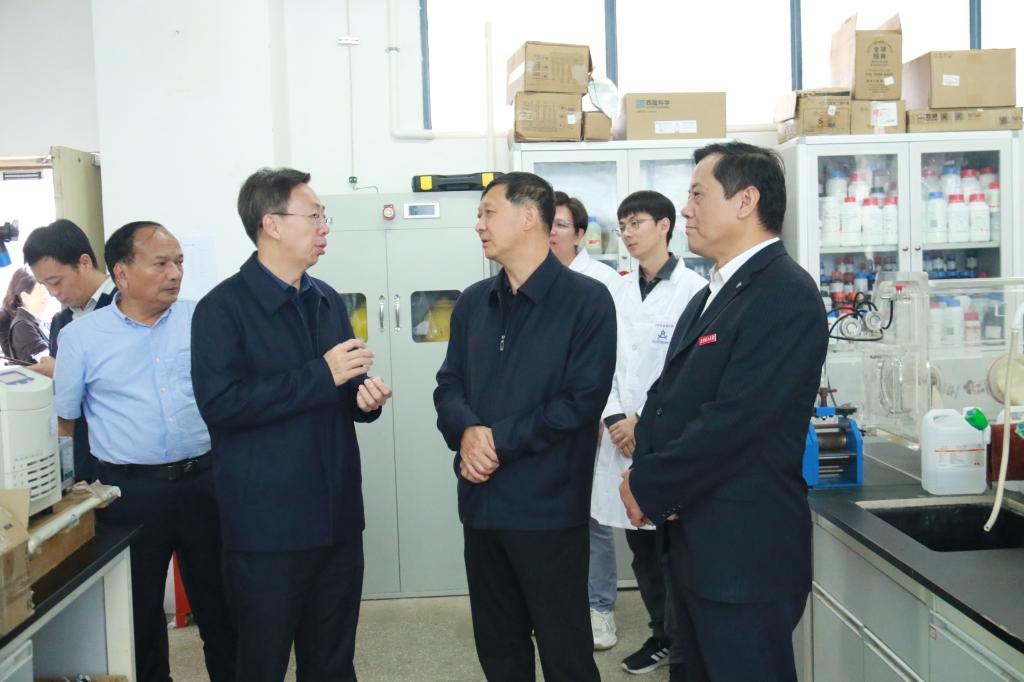 省政协领导一行参观了云南省磷化工节能与新材料重点实验室。并与梅毅教授进行交谈,了解了专家的生活、工作、科研情况,听取相关意见和建议。同时,对梅毅教授多年围绕基础磷化工的流程再造、节能减排、循环经济、产品升级,磷系阻燃材料、储能材料开展研究与工程开发所做出的贡献表示感谢,并致以最真诚的问候和祝福。